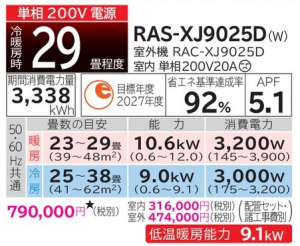日立 ルームエアコン XJシリーズ 29畳用 (RAS-XJ9025D)