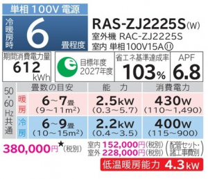 日立 ルームエアコン ZJシリーズ 6畳用 (RAS-ZJ2225S)