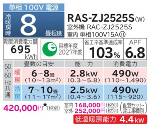 日立 ルームエアコン ZJシリーズ 8畳用 (RAS-ZJ2525S)