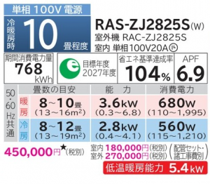 日立 ルームエアコン ZJシリーズ 10畳用 (RAS-ZJ2825S)