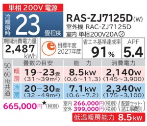 日立 ルームエアコン ZJシリーズ 23畳用 (RAS-ZJ7125D)