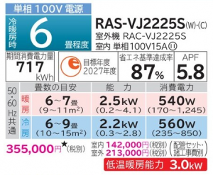 日立 ルームエアコン VJシリーズ 6畳用 (RAS-VJ2225S)