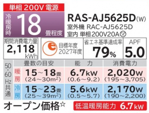 日立 ルームエアコン AJシリーズ 18畳用 (RAS-AJ5625D)