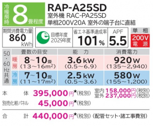 日立 ルームエアコン 一方向カセット型 PAシリーズ 8畳用 (RAP-A25SD)